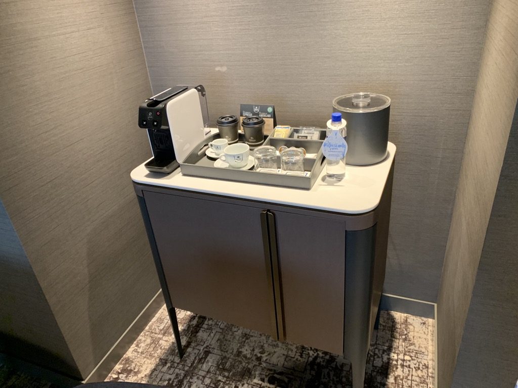 Zusätzlich gab es eine Kaffeemaschine und die üblichen Tees und Wasser auf dem Zimmer, welche kostenlos waren.