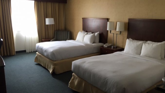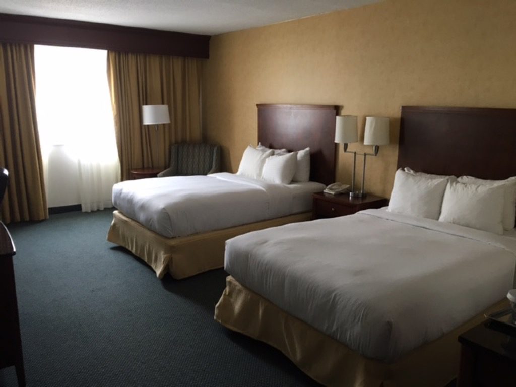 Mein Twin Bed Guestroom im Hilton Cincinnati Airport hatte eine angenehme Größe. Auch wenn es nicht den modernsten Eindruck erweckt, war das Zimmer in einem sehr guten Zustand. Die zwei Queensize Betten waren mit einem dicken Komforter ausgestattet, sodass ich sehr gut schlafen konnte.