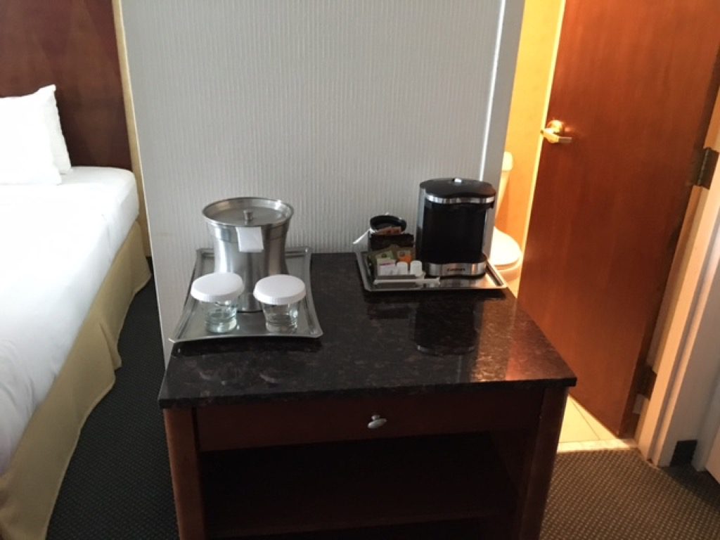 Wie in allen Hilton Hotels standen auch der Ice Bucket und eine Kaffeemaschine bereit. Auf eine Minibar verzichtete man im Hilton Cincinnati Airport. Allerdings gab es einen kleinen Kühlschrank auf dem Zimmer.