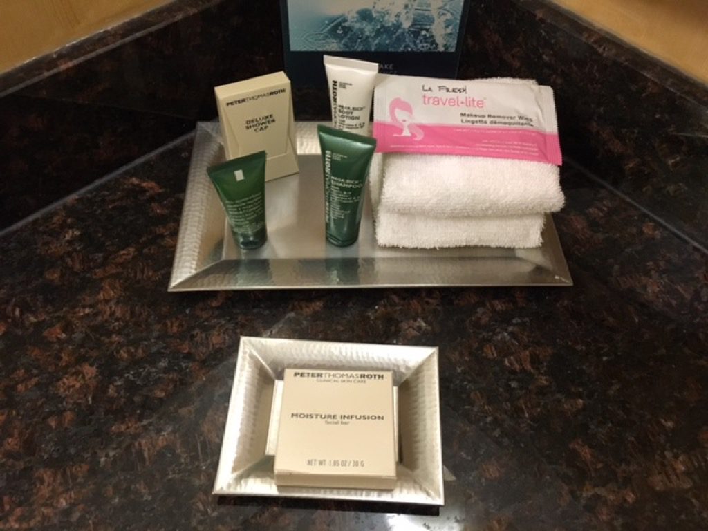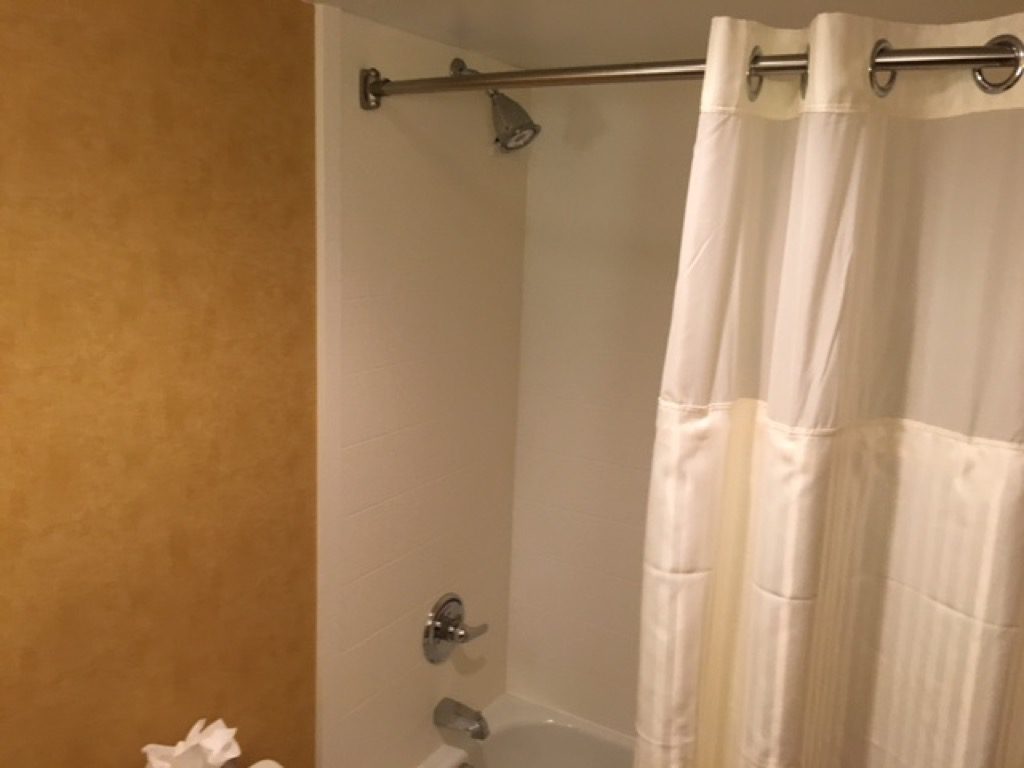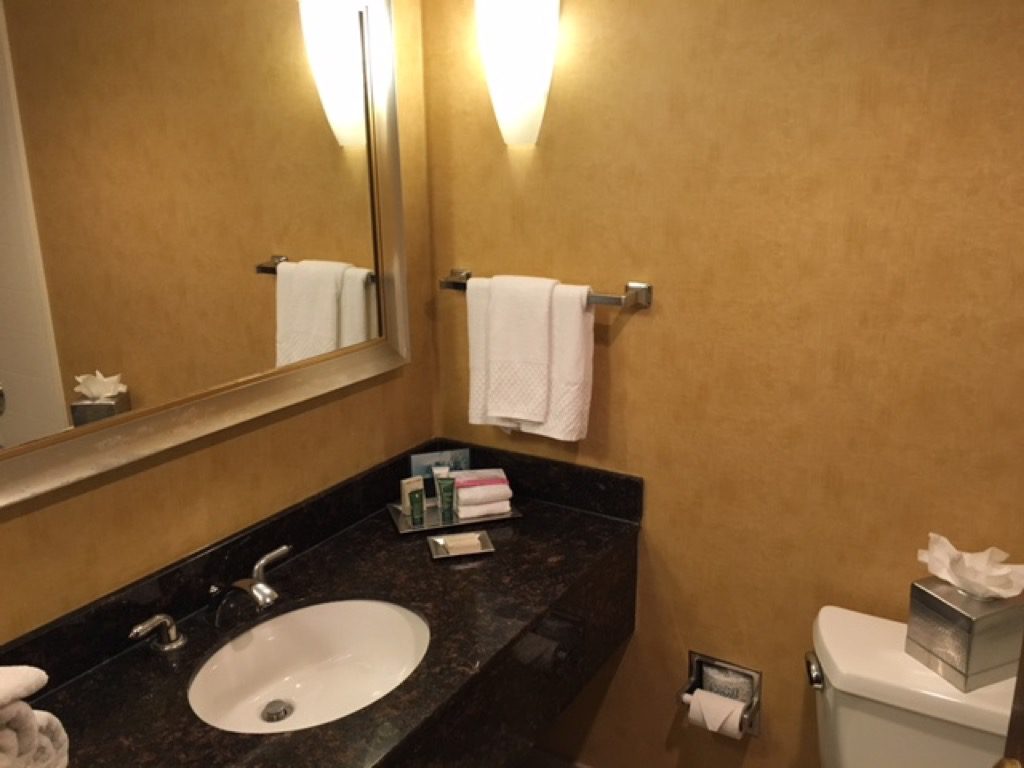 Das Bad war eher klein und lässt sich als funktional beschreiben. Wie in vielen US Hotels gab es eine Badewanne mit Duschvorhang. Ich persönlich bevorzuge richtige Duschen. Es standen natürlich auch die Hilton typischen Peter Thomas Roth Amenities bereit.
