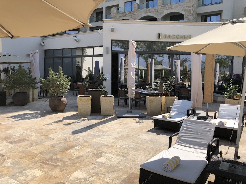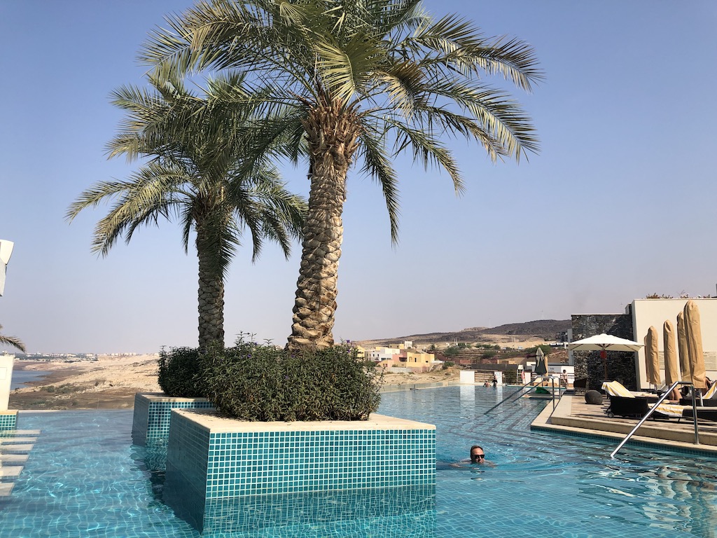 Am Pool ist ein weiteres Restaurant mit Terrasse, einige Stufen weiter unten dann der Zugang zum Toten Meer. Alternativ gab es den Beach-Elevator um dorthin zu gelangen. Eine weitere Bar ist dann direkt am Strand, Mitarbeiter standen als Ansprechpartner zum Meer zur Verfügung und waren sogar beim Einreiben mit Schlamm behilflich.