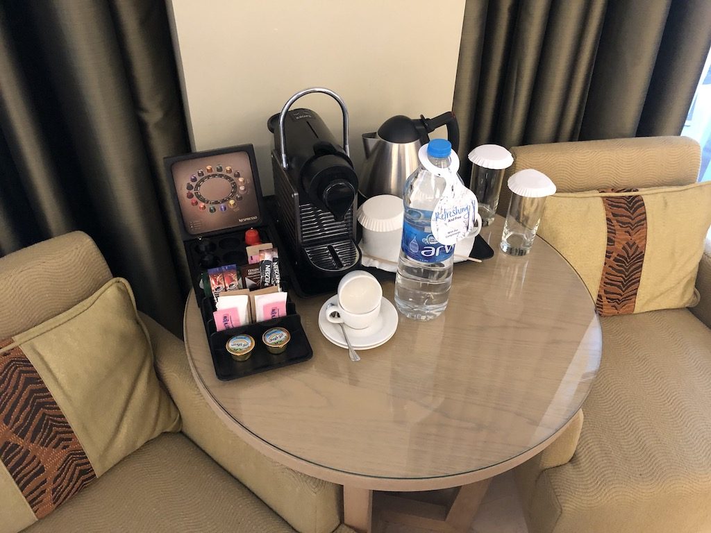 Ich ließ nicht ab und fragte ob noch Suiten verfügbar seien. Das fast schon übliche „wir sind ausgebucht“ kam direkt als Antwort, aber ich blieb hartnäckig. Ich zeigte ihr die App auf der noch eine Junior Suite buchbar war und sie meinte nach Rücksprache mit ihrem Kollegen dass es diese gegen einen Aufpreis von 60 Jordanischen Dinar pro Nacht gibt (etwa 75€), da wir ja schon ein Upgrade erhalten haben.