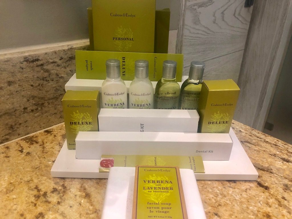 Zum Badezimmer konnte man zwei grosse Schiebetüren öffnen und die Suite wirkte noch größer. Eine freistehende Badewanne befindet sich dort in der Mitte. Ausgestattet war das Bad mit allem erdenklichen was Hotels seinen Gästen als Einwegartikel nur mitgeben kann.
