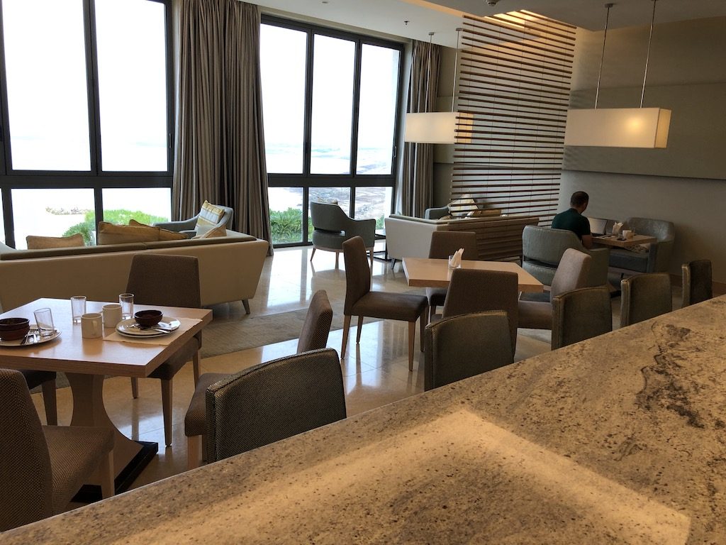 Für Gäste von Executive Zimmern, Suiten und Diamond Mitglieder des Hilton Honors Programmes steht die Lounge offen. Dort wurde zu meiner Überraschung kein Frühstück serviert, aber die Lounge liegt direkt neben dem Restaurant. Es war also möglich sich am Buffet zu bedienen und das Essen in der Lounge zu sich zu nehmen. Ein eigener Vollautomat sorgte auch für entspannten Kaffeegenuss ohne lange Wartezeiten.