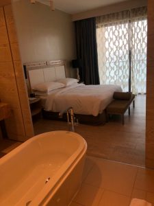 Neben regulären Zimmern mit Twin oder King Betten, gibt es auch welche mit Meerblick und Terrasse sowie Executive Zimmer mit Loungezugang. Danach folgen schon Suiten in 3 verschiedenen Kategorien. Wir erhielten ein Twin-Bed Zimmer mit Balkon. Der Meerblick war also das Upgrade im Vergleich zu dem gebuchten regulären Zimmer.