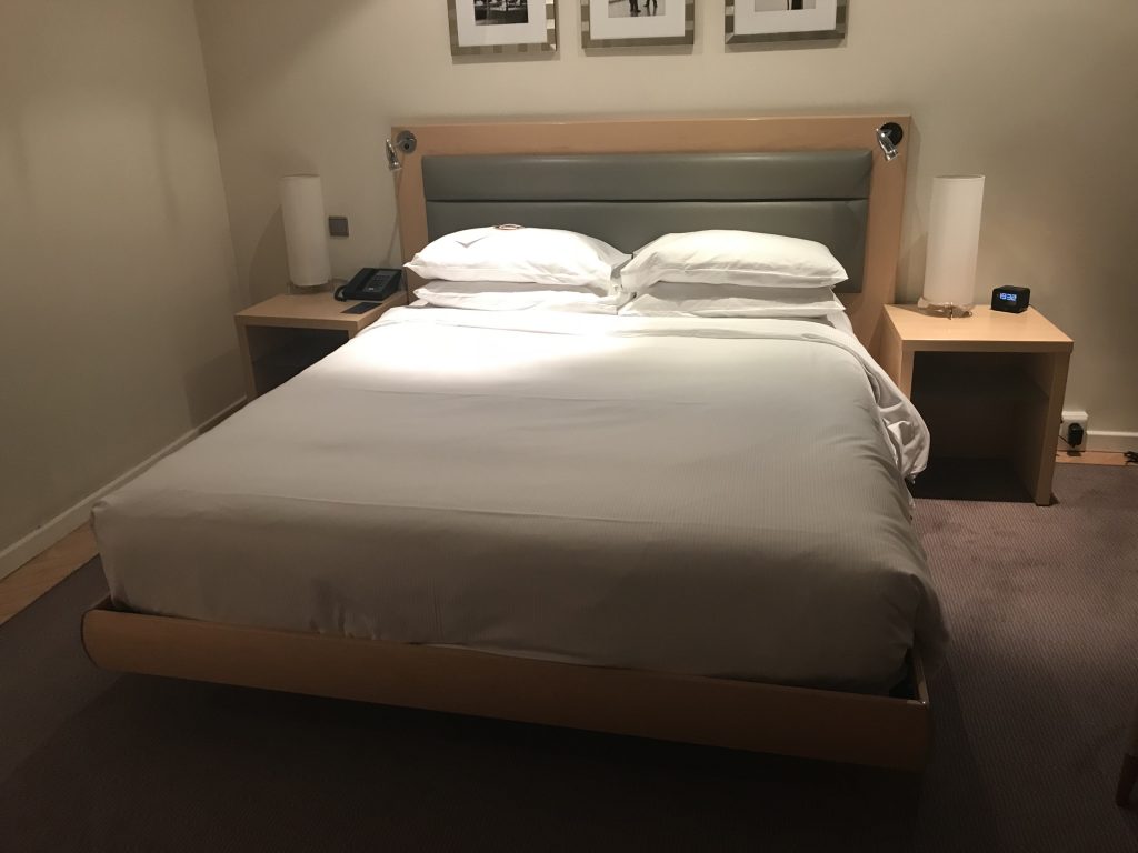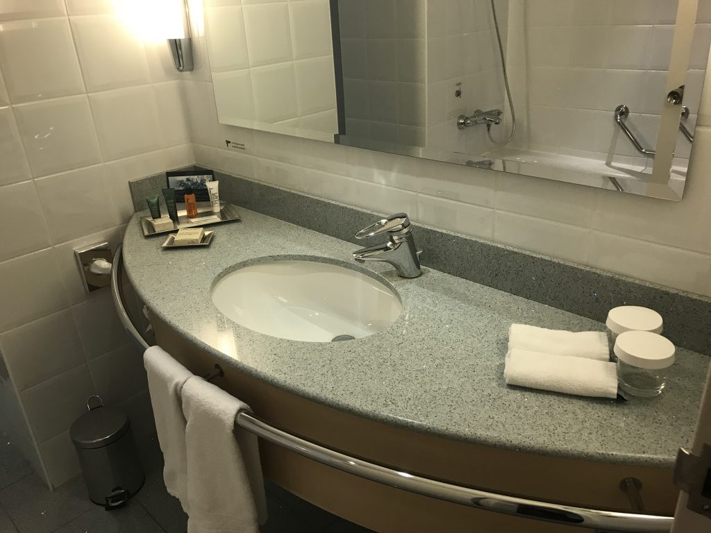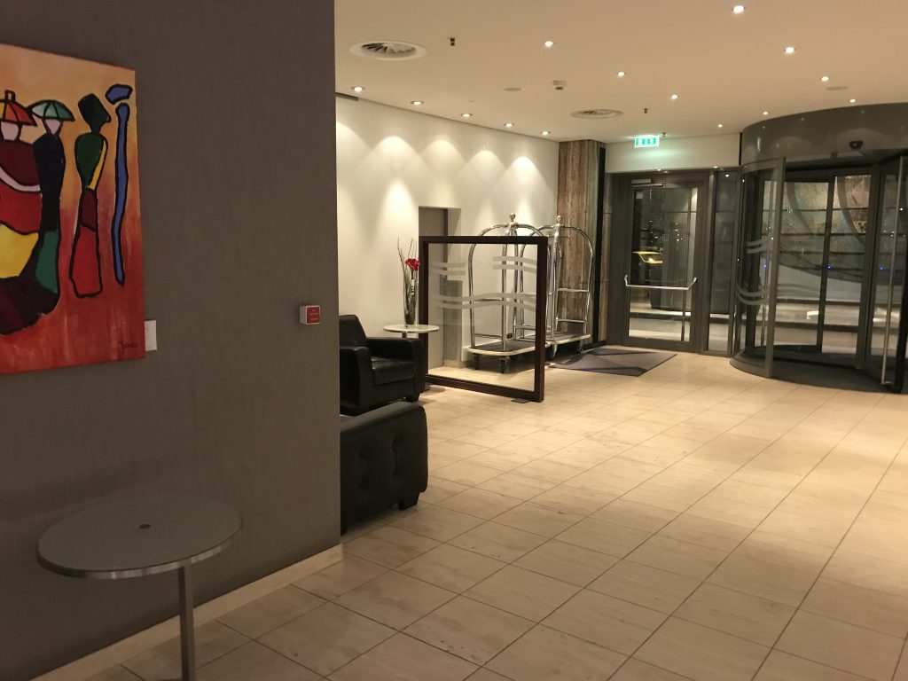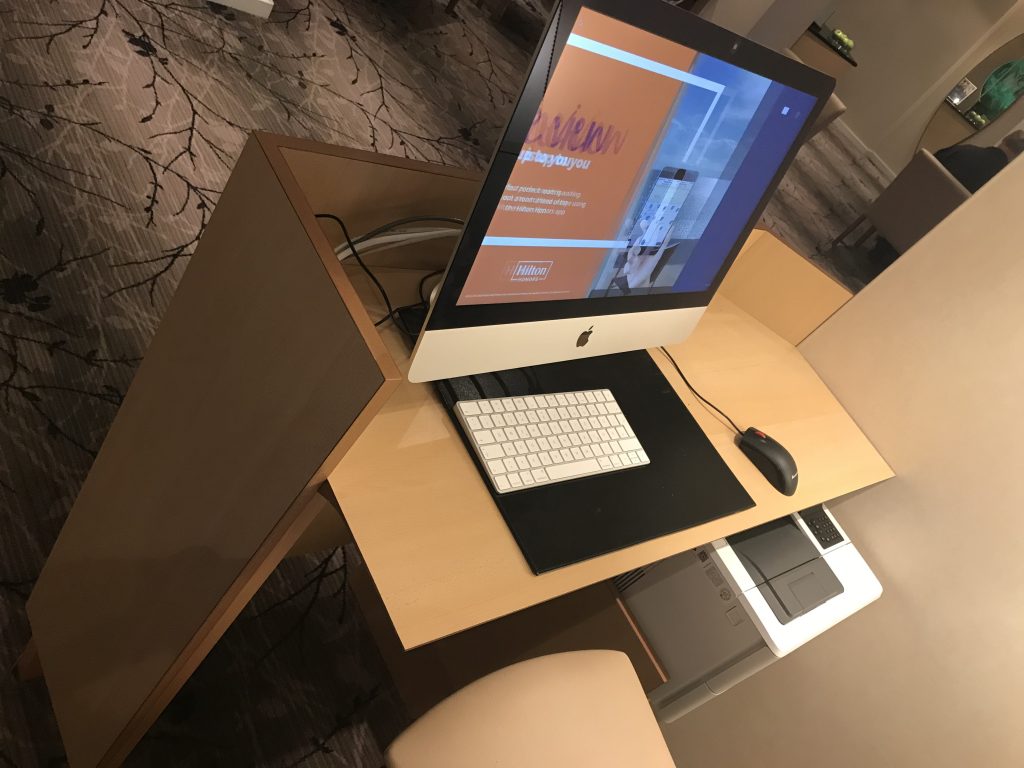 In der Lobby angekommen, wurde ich an der Rezeption sehr freundlich empfangen. Man bedankte sich für die Treue und wies auf die Vorteile des Hilton Diamond Status hin. So bekam ich ein Upgrade auf den Executive Floor und natürlich Zugang zur Lounge, sowieso kostenfreies Wlan und Frühstück. Das Frühstück konnte ich leider nicht mehr genießen, weil mein Flug, wie eingangs erwähnt, schon um 5:50 Uhr startete. Nach einer Unterschrift bekam ich die Zimmerkarte und mir wurden die Wege zum Zimmer und zur Lounge erklärt.
