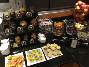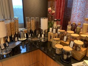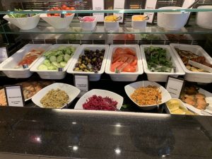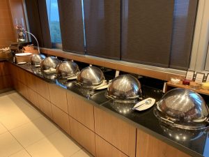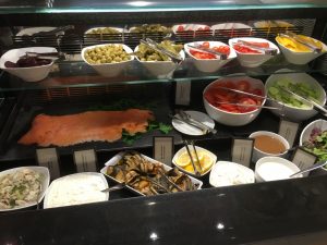 Die Executive Lounge befand sich im 10. Stock und der Zutritt wurde mit der Zimmerkarte kontrolliert. Das Design war sehr Hilton-typisch modern, was mir persönlich sehr gut gefiel. Im vorderen Bereich der Lounge war das Buffet, sowie ein recht großer Bistro Bereich mit Sesseln und Tischen.