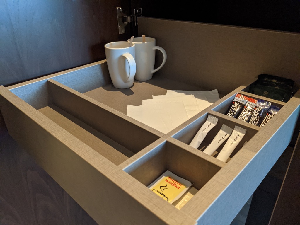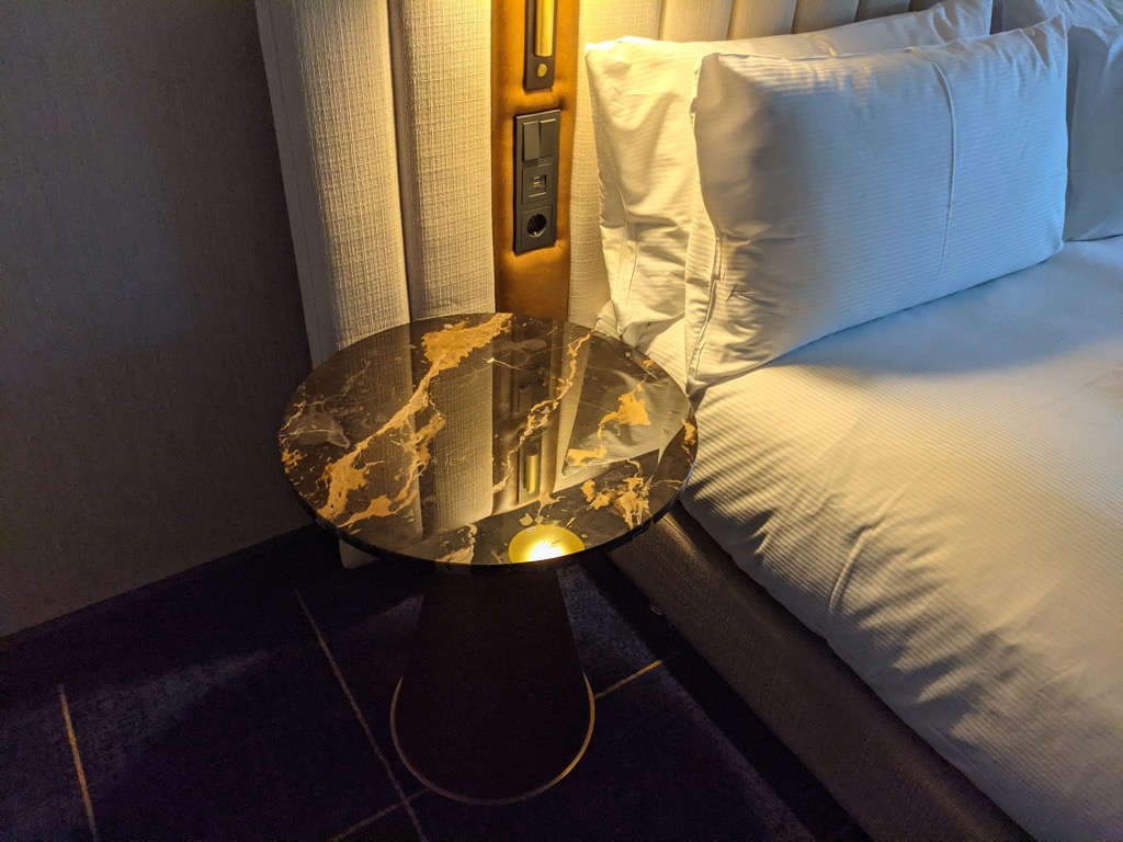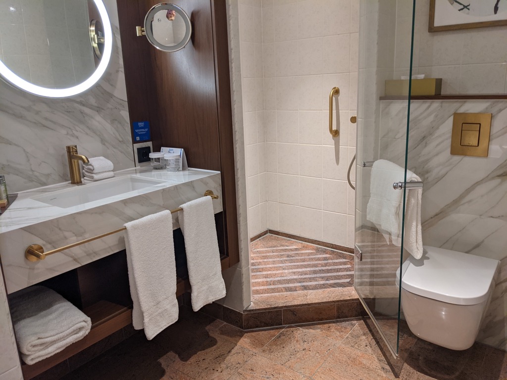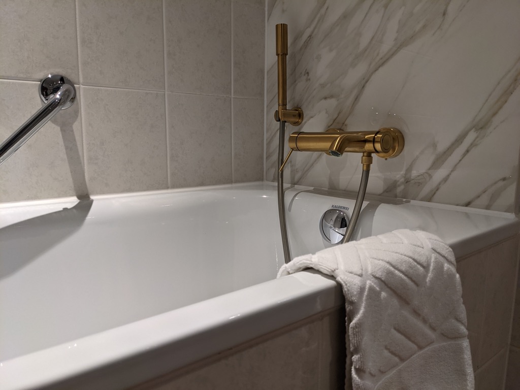 Abgesehen von dem Ausblick besteht das King Deluxe Room aus klassischen Eigenschaften wie Safe, King Size Bed, Minibar und Amenities im Bad. Besonderes auffallend ist der goldene Akzent vor allem im Badezimmer, aber auch im Schlaf- und Wohnbereich. Auch wenn wir den goldenen Akzent nicht benötigen, ist er eine Abwechslung und war für uns ein Erlebnis.
