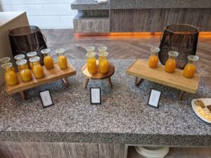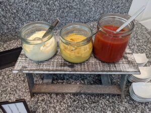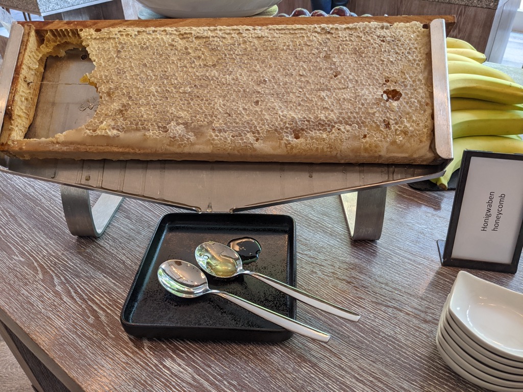 Grundsätzlich gibt es neben dem Frühstück auch ein Abendessen, welches wir aber nicht in Anspruch genommen haben. Daher kann ich an der Stelle nur etwas über das Frühstück sagen. Hierbei handelt es sich um ein Buffet und ein ist ein klassisches westliches Frühstück mit einer für mich großen Überraschung. Im Buffet gab es eine Honigwabe, was ich so bisher noch nicht kennengelernt habe und für mich eine neue Erfahrung war. Mir schmeckte es, allerdings reicht eine kleine Menge aus.