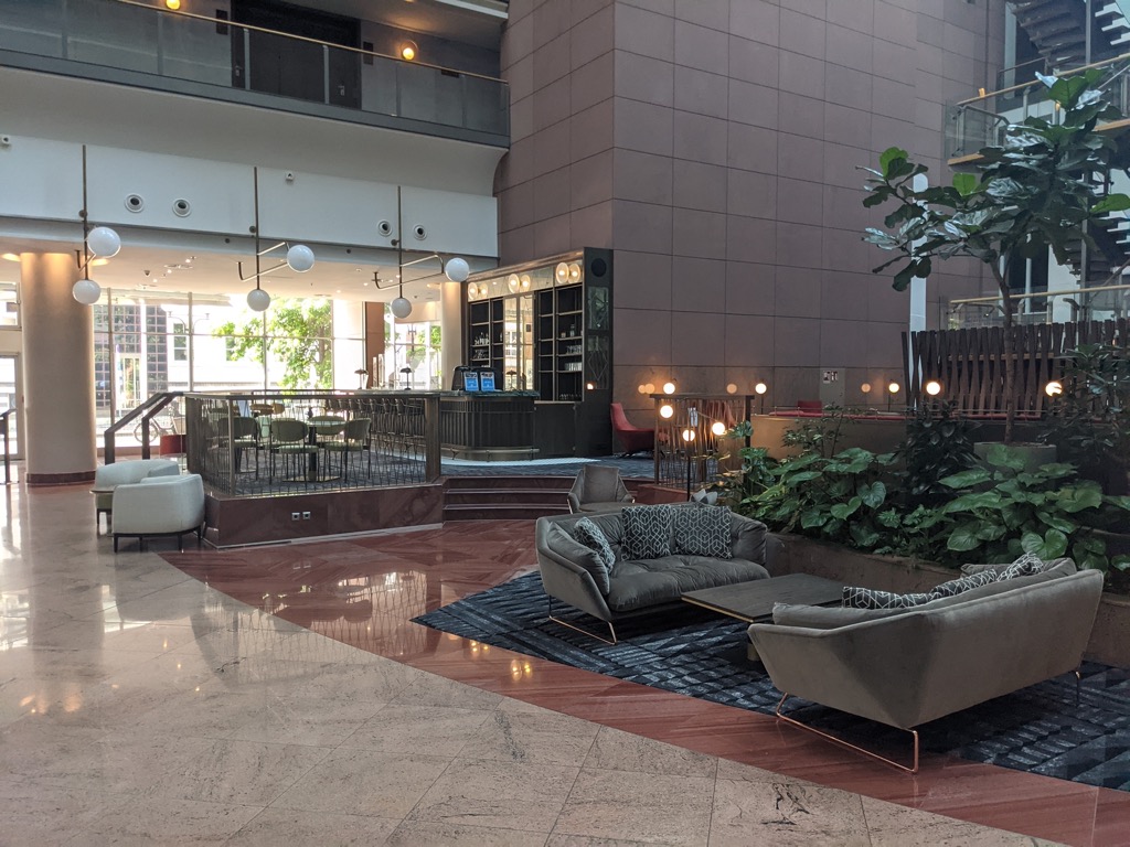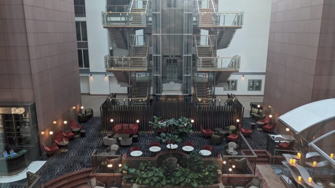 Das Hilton Frankfurt City Centre Hotel ist sehr groß, wodurch wir uns sowohl in der Lobby als auch am/im Aufzug nicht eingeengt fühlten. Hilton nutzt die Fläche im Positiven aus, aber seht selbst: