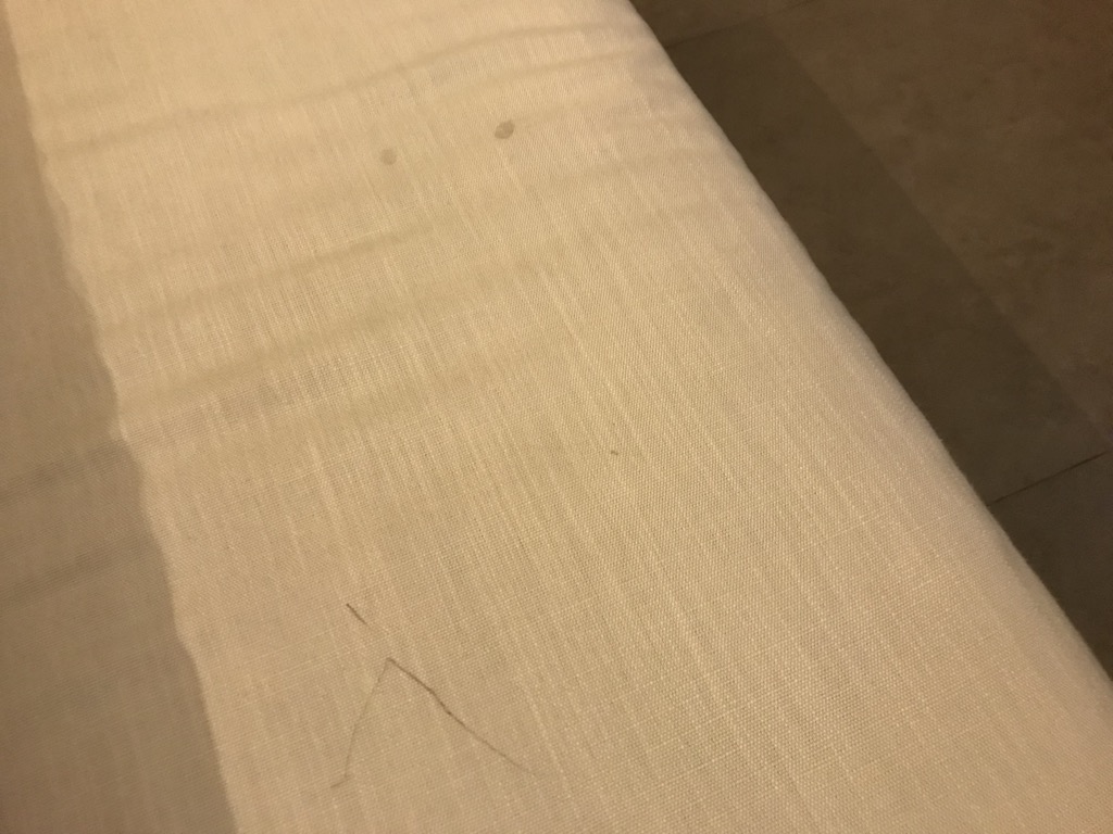 Die Couch im Wohnbereich schien ihre beste Zeit hinter sich gehabt zu haben. Sie hatte sehr viele, seh unappetitliche Flecken.