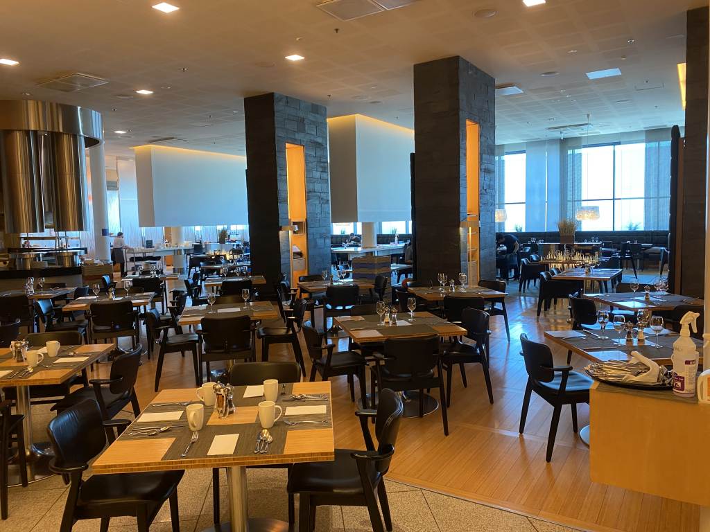 Das Frühstück wird im Hauptrestaurant im Erdgeschoss täglich von 6:00 bis 10:00 Uhr in Büffet-Form angeboten. Pro Person wird die morgendliche Mahlzeit mit 29,50 Euro berechnet. Ab Gold-Status ist sie inklusive. Früher abreisende Fluggäste haben ab 3:30 Uhr die Möglichkeit ein „Early Breakfast“ einzunehmen.