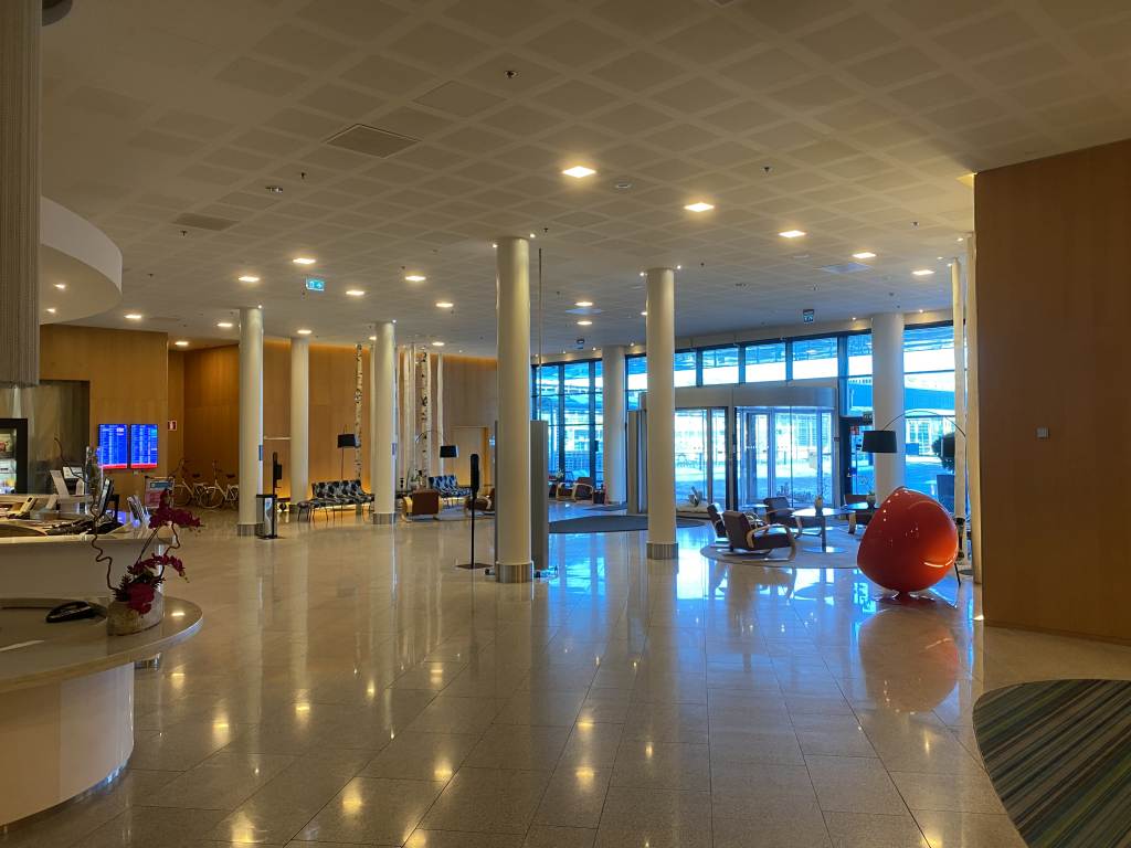 Als wir am späten Nachmittag im Hilton Helsinki Airport ankamen, war die Lobby nur sehr wenig frequentiert. Wir waren zwar nicht die einzigen Gäste an der Rezeption, waren jedoch in kürzester Zeit an der Reihe.