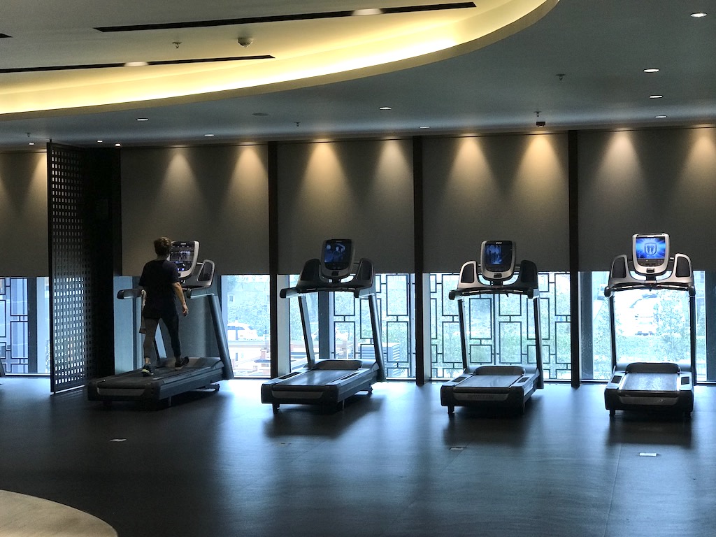 Weiterhin gibt es ein großräumiges Fitnessstudio mit verschiedenen Cardio-Geräten, einem Freihantelbereich und einer guten Auswahl von Geräten für das Krafttraining.