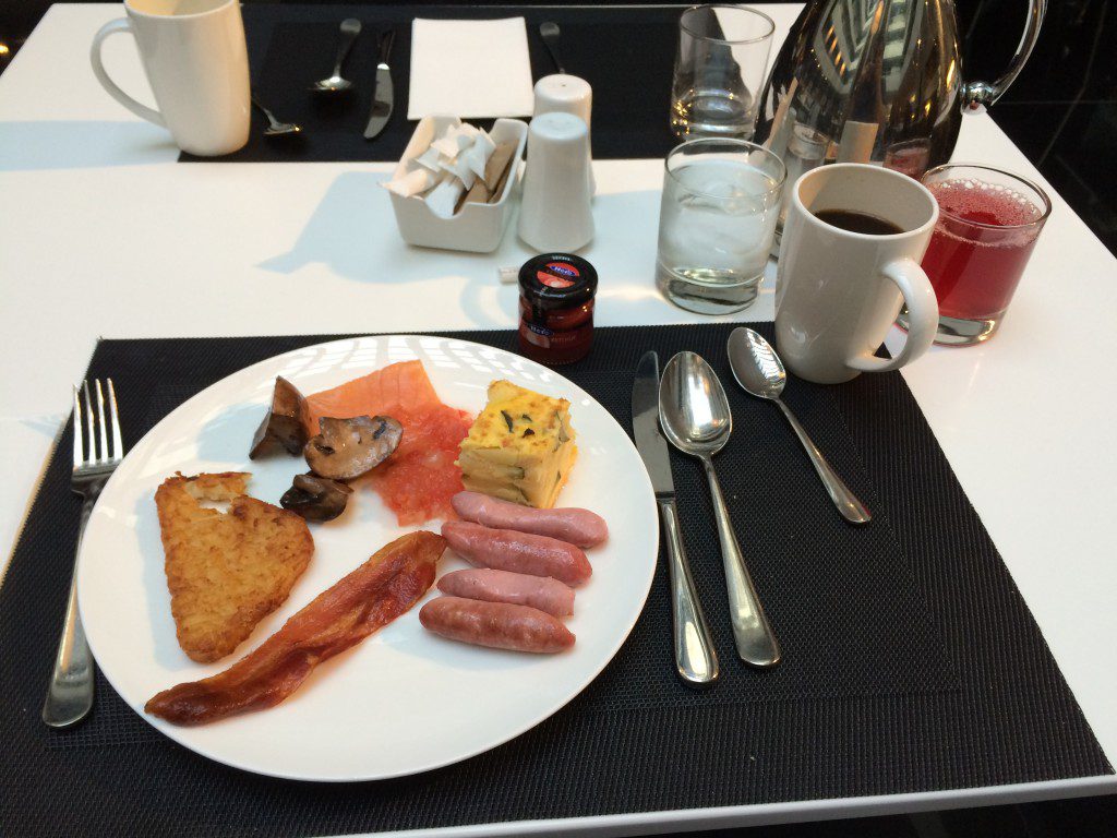 Der Check In war schnell und effizient. Mein Hilton Hhonors Diamond Status wurde erkannt und mir wurde mitgeteilt, dass ich von einem King Guest Room, also dem kleinsten Zimmer, in einen King Relaxation Room upgegradet wurde. Mit der Zimmerkarte gab es ebenfalls einen Code für das Internet und den Hinweis auf das Frühstück im Restaurant und der Executive Lounge. Empfohlen wurde mir jedoch im Restaurant zu frühstücken. Das Frühstück in der Lounge sei nur Continental: Wie ich am nächsten Morgen gesehen habe sehr „Continental“.