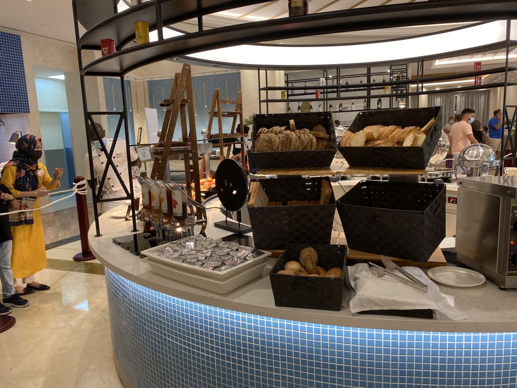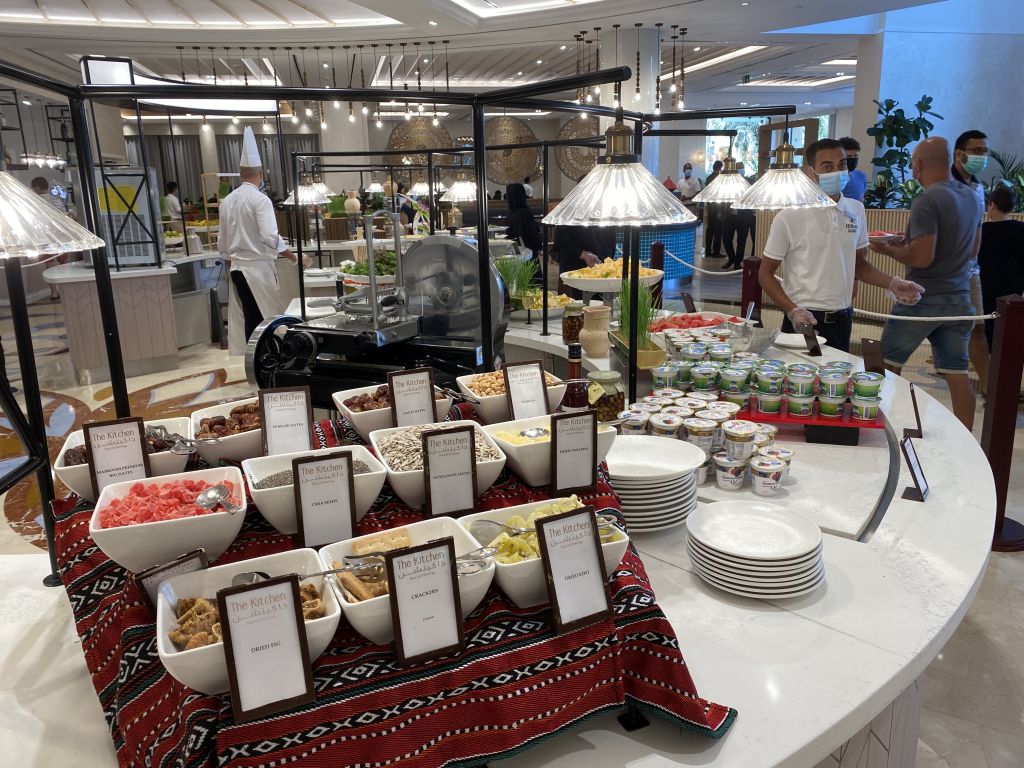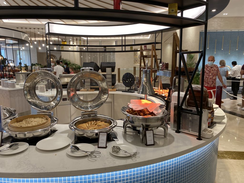 Das Haupt-Restaurant ist „The Kitchen“. Dort wird morgens bis 10:30 Uhr auch das Frühstück in Büffet-Form serviert. Auf Grund der Corona-Vorschriften war bei unseren Aufenthalten keine Selbstbedienung möglich/notwendig. Stattdessen haben ausreichend Mitarbeiter die unterschiedlichen Speisen nach Wunsch herausgegeben.