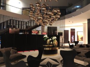 Die Lobby ist stylisch und modern, diese wurde mit geschmackvoller Loungemöbel ausgestattet. Die indirekte Beleuchtung wechselt permanent die dezenten Farben, im Mittelpunkt ist die Lobby-Bar. Zur Zeit ist diese aber geschlossen, alternativ werden Drinks im dem Restaurant serviert.