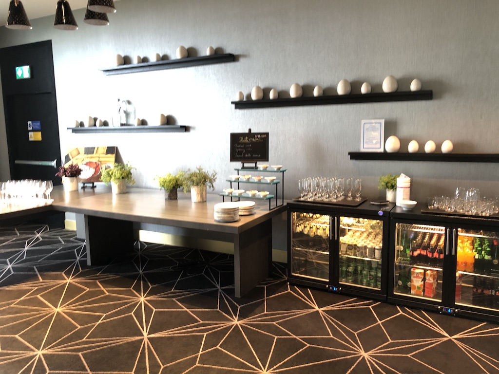 Das Frühstück wurde täglich bis 10:30 Uhr serviert, Getränke und kalte Speisen waren zur Selbstbedienung in Buffetform. Dazu gehörten Wasser und verschiedene Säfte sowie Heißgetränke aus einem Vollautomat.