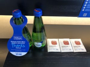 Das Wasser ist als Dankeschön für Teilnehmer vom Hilton Honors Programm vorgesehen. Für alle anderen Gäste werden 3,50€ berechnet.