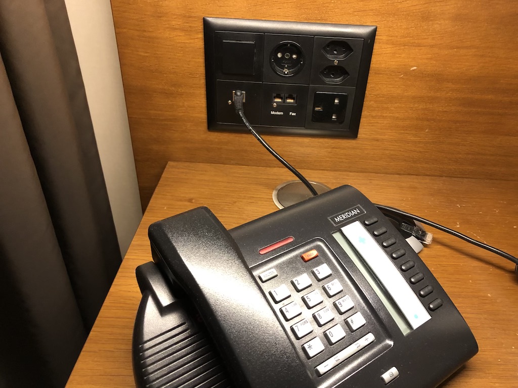 Im Zimmer gibt es zahlreiche Steckdosen – auch in unterschiedlichen Formaten, USB-Schnittstellen und schnelles W-LAN.