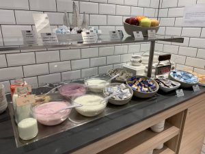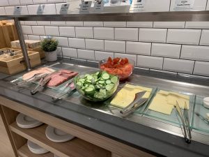 Das Frühstück im Holiday Inn Express Erlangen war vielleicht der Überraschungsmoment des gesamten Aufenthalts. So gibt es immer einige Standards, wie Wurst-Aufschnitt und Eier. Außerdem gibt es immer kalte Speisen bestehend aus Käse, Joghurts, Obst bzw. Obstsalaten. Ergänzend steht standardmäßig eine Auswahl an Brot und Brötchen sowie Gebäck und Müslis bereit.