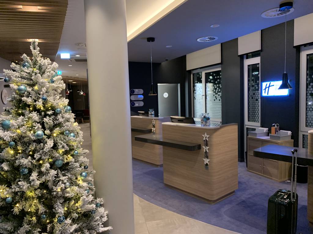 Bei unserer Ankunft im Holiday Inn Express Erlangen war der Check-In nicht besetzt. Stattdessen stand ein „Komme gleich wieder“-Schild an der Rezeption. Wir warteten ein paar Minuten, bis der Mitarbeiter zurückkehrte und uns freundlich begrüßte.