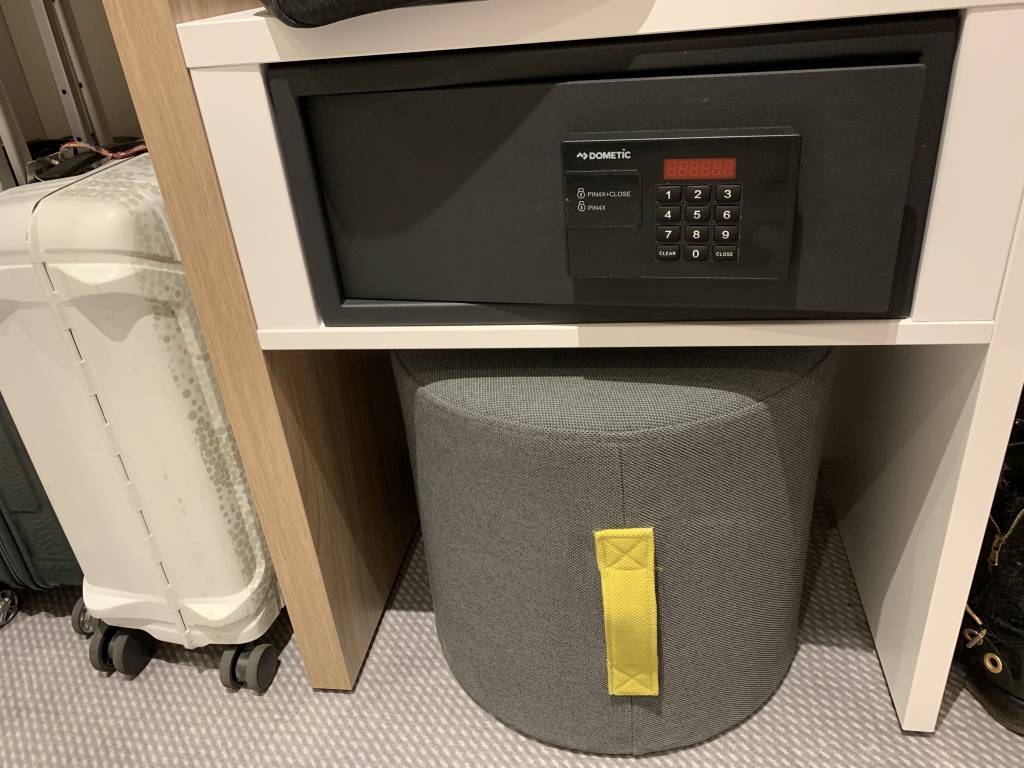 Darüber hinaus war die Zimmer-Ausstattung wie gewohnt: Ein bequemer Sessel, dazu ein Hocker. Ein ausreichend großer Flachbildfernseher und ein Safe. Auf eine Minbar oder einen Kühlschrank mussten wir jedoch verzichten. Dafür gab es eine Garderobe, Wasserkocher mit Instant-Kaffee und Tee sowie Bügeleisen und Bügelbrett.