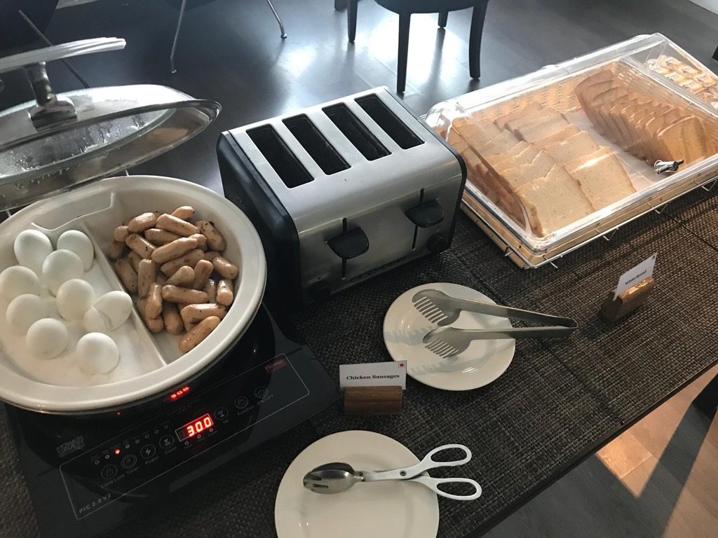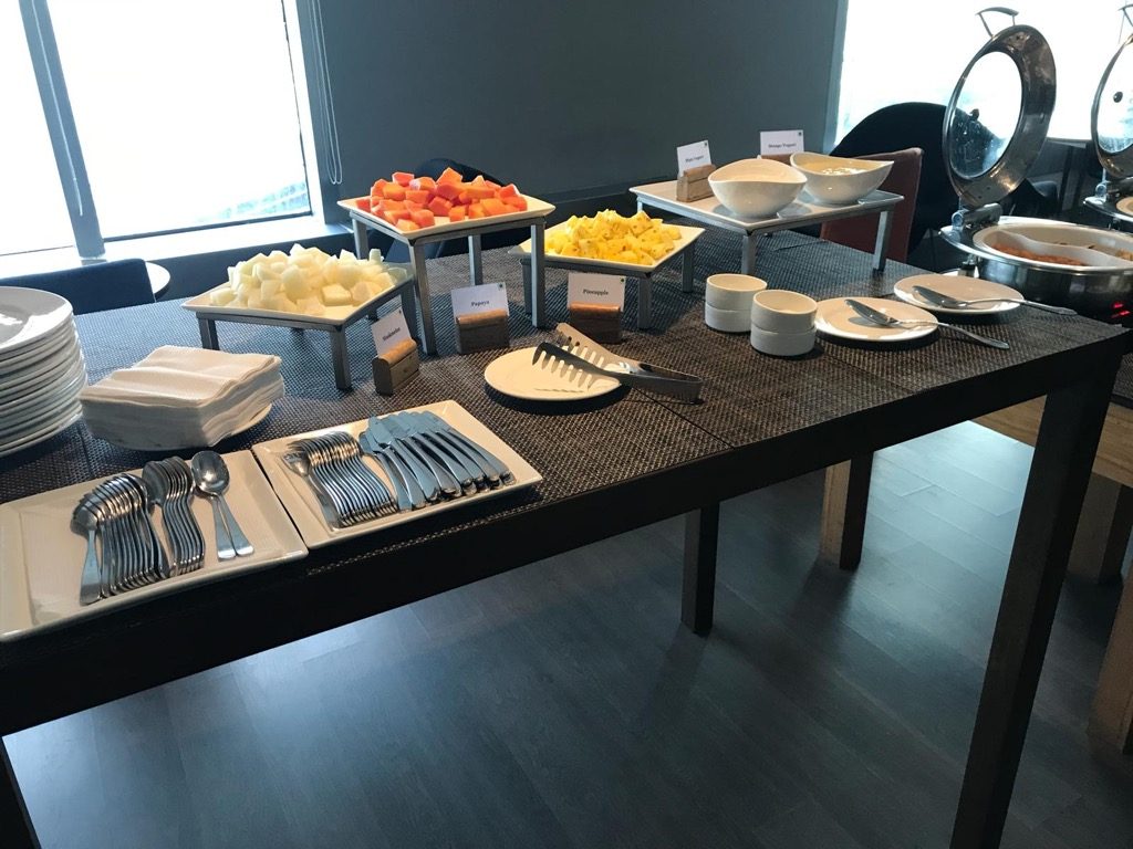 Das Frühstück war, wenn man bedenkt, dass die Übernachtung 120€ gekostet hätte, ziemlich mickrig. Man konnte etwas zu sich nehmen, den Hunger etwas stillen, aber wirklich satt wurde man nicht. Zum Glück hatten wir am späten Abend Weiterfluge mit Loungezugang.