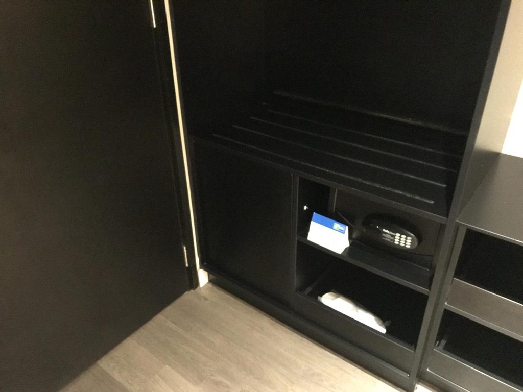 Neben der Ablage und gegenüber des Badezimmers befand sich noch ein Schrank inkl. Safe und Hausschuhen.