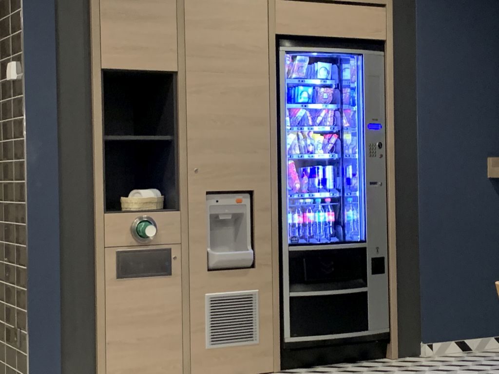 Die Lobby des Holiday Inn Express Ringsheim sah so aus wie aus dem aktuellen Modulkasten der Kette. Rezeption gegenüber dem Eingang. Daneben erst die Bar und dann das Frühstücks-Restaurant. Gegenüber der Bar einige Sitzgelegenheiten zum Essen oder Relaxen. Auf der anderen Seite neben der Tür eine Kinder-Ecke. Zuletzt hatte ich das Konzept spiegelverkehrt gesehen.