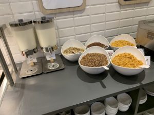 Selbst an Joghurt und Cerealien wurde gedacht. Als Eierspeisen gab es allerdings nur gekochte Eier, was aber meinen Erfahrungen nach dem Standard entspricht.