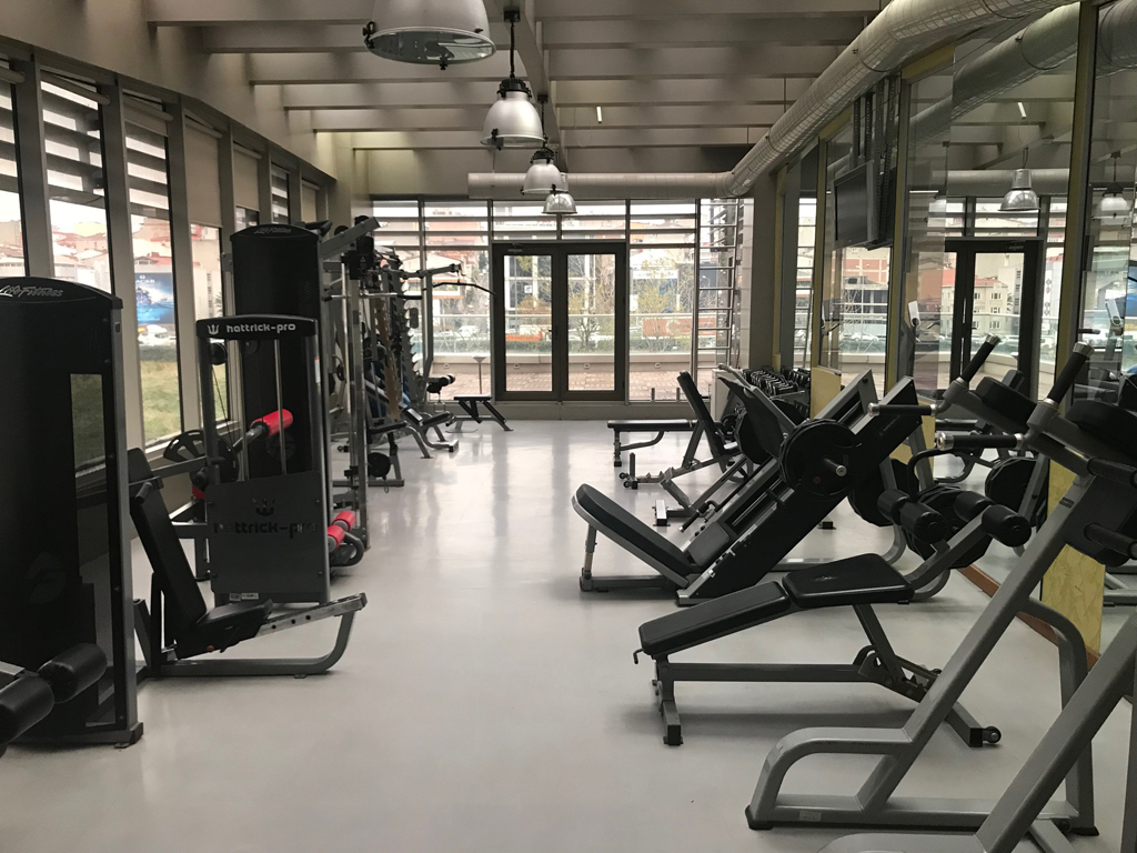 Auch ein Fitnessstudio gehört mit zum Interieur dieses Hotels. Hier fanden sich diverse Geräte zum Cardio- und Muskeltraining sowie ein Freihantelbereich. Diese Ausstattung war großzügig.