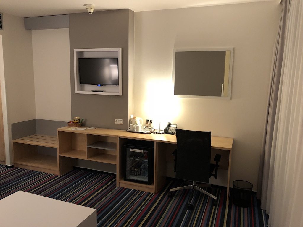 Die Marke Holiday Inn gehört der Hotelkette IHG an, bei welcher ich den höchsten Status – Spire – innehalte. Deshalb buche ich IHG Hotels immer ausschließlich direkt auf IHG um die Vorteile meines Status zu nutzen. Bei Holiday Inn Hotels bedeutet dies ein Upgrade nach Verfügbarkeit, ein Late Check-Out nach Verfügbarkeit, sowie 500 Willkommenspunkte oder ein Getränk mit einem Snack an der Bar.