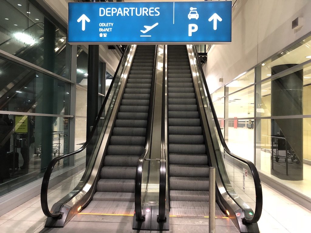 Das Shuttle benötigt in der Regel ca. 5 Minuten (in meinem Fall nur ca. 2 Minuten, da es bereits auf dem Weg war). Die Abholung erfolgt auf der Abflugebene, das bedeutet, nach dem Telefonat die Rolltreppe auf das Obergeschoss nehmen.