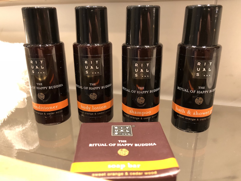 Die Suite selbst bot einen geräumigen Eingangsbereich ausgestattet mit hochwertigem Holzboden und einer kleinen Garderobe und Kommode für das Gepäck. Das sich anschließende Schlafzimmer, ausgestattet mit einem sehr komfortablen Kingsize-Bett, bot ebenfalls eine inkludierte Minibar im Tresor-Look, sowie einen kleinen Arbeitsbereich im hinteren Bereich des Zimmers. Das Badezimmer war mit ausreichend Ablageflächen und einer Regendusche ausgestattet, als Amenities standen hochwertige Rituals-Produkte zur Verfügung. Kleines Manko war hier, dass in der Dusche keine Ablage vorhanden war, jedoch wird dies wohl noch nachgerüstet.