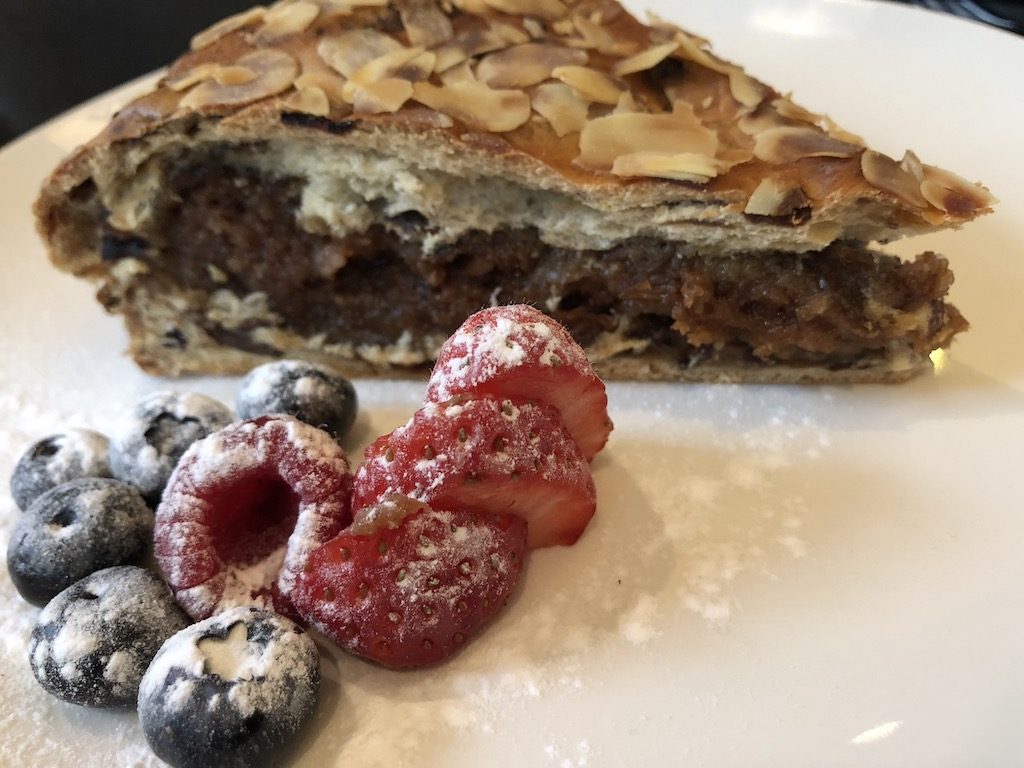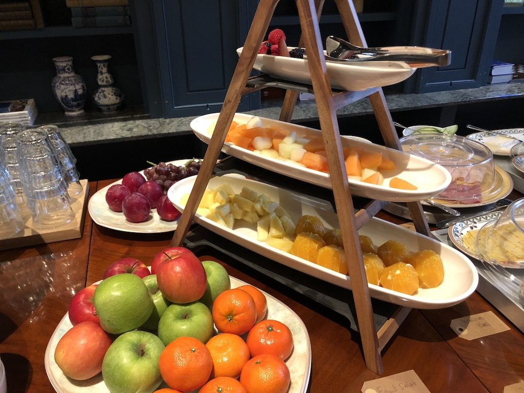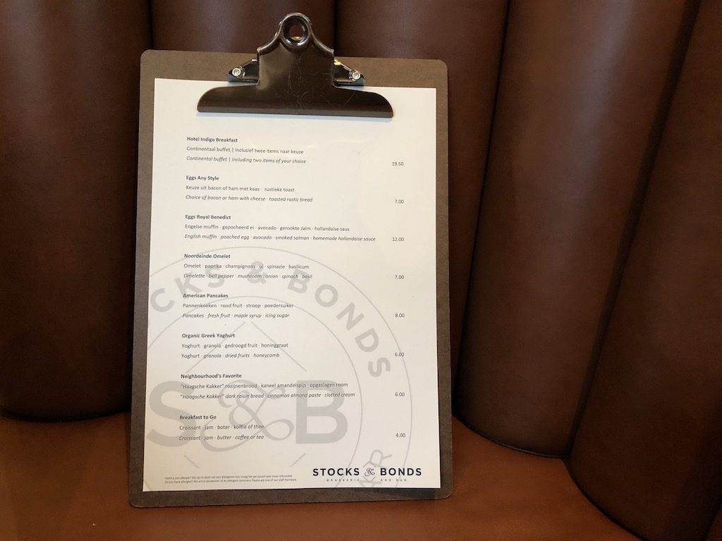 Das Frühstücksrestaurant befindet sich angrenzend zur Lobby im Erdgeschoss. Erneut wurde das Bank-Design durchgezogen. Neben dem regulären Buffet, welches bereits eine große Auswahl an Cerealien, Brot, Wurst, Käse, Aufstrichen, Obst und Säften bot, wird zusätzlich ein À-la-Carte Menü gereicht, aus welchem wir uns Eggs Royal Benedict und einen traditionellen Kuchen aus Den Haag, den „Haagsche Kakker“ wählten. Sehr lecker!