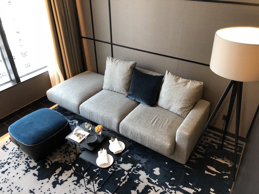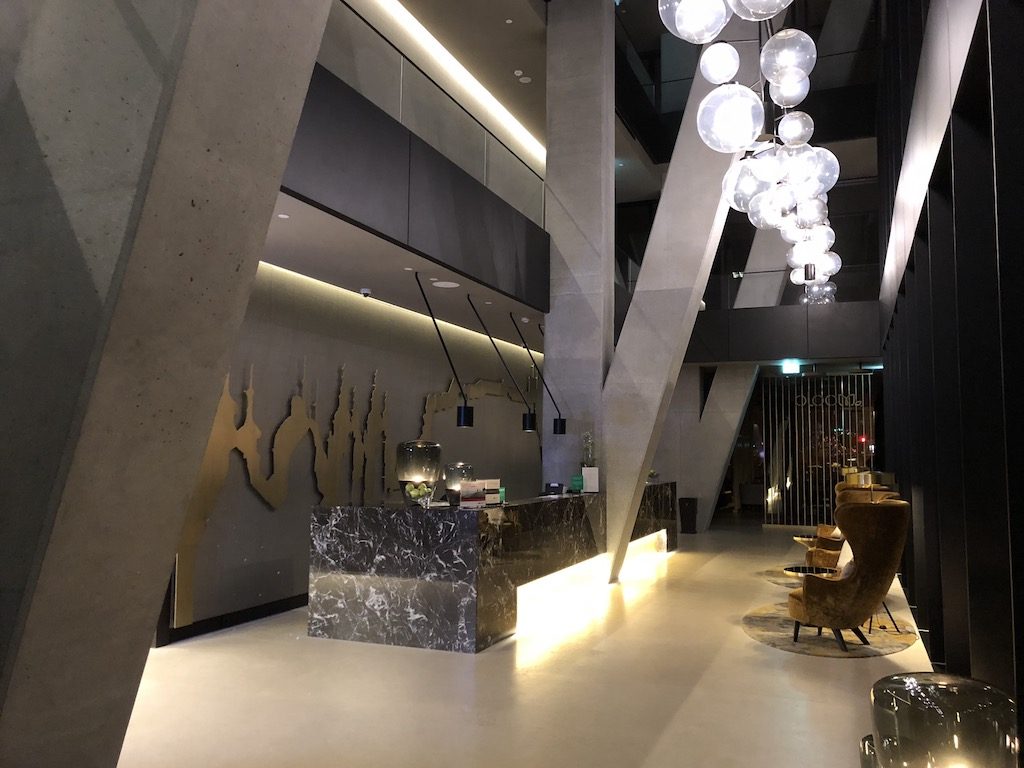 In der Lobby wurden wir von zwei freundlichen Rezeptionisten empfangen. Eine Begrüßung als Spire Royal Ambassador Mitglied erfolgte inklusive einem Upgrade. Zur Wahl stand eine Executive Suite im 4. Stock oder eine Junior Suite im 16. Stock. Wir entschieden uns für letztere. Nach wenigen Minuten waren die Formalitäten erledigt und wir begaben uns auf unsere Suite mit der Nummer 1605.