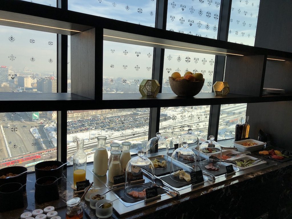 Im 19. Stock befindet sich die Club Lounge, welche in einer L Form angelegt ist. Am Empfang vorbei befindet sich zur linken ein kleines Buffet, zur rechten zahlreiche reguläre Sitzgelegenheiten mit Tischen, sowie am Ende um die Ecke ein kleiner Lounge-Bereich mit Sesseln und Sofas. Zusätzlich bietet die Lounge ein Mini-Businesscenter mit Computer und Drucker. Während das Frühstück eine umfangreiche Auswahl und die Möglichkeit zur Bestellung verschiedener Süß- und Eierspeisen bot, war das Angebot während der „Tea-Time“ am Nachmittag, sowie am Abend auf kleinere warme Snacks, sowie einiger Wurst- und Käsespezialitäten begrenzt. Wir verzichteten meist auf das Angebot am Mittag, aufgrund unseres Tagesprogramms und nutzen die Club Lounge am Abend nur für einen Aperitif und einen Snack, bevor es zum Abendessen in die Stadt ging.