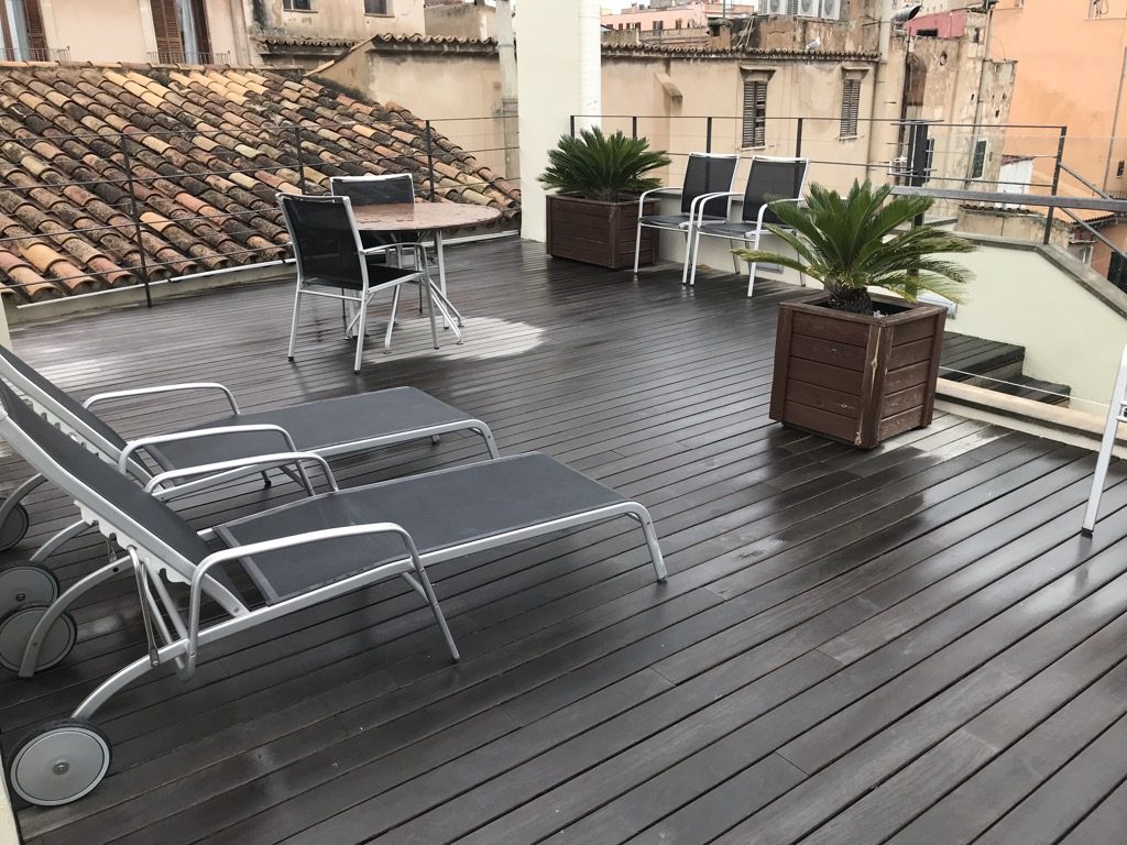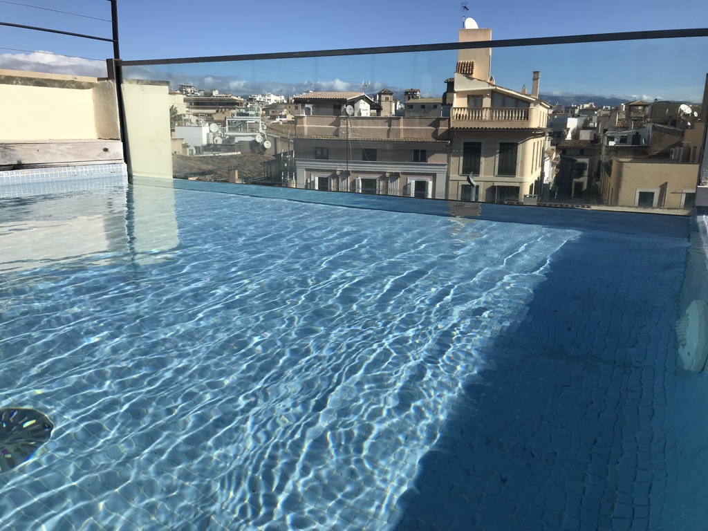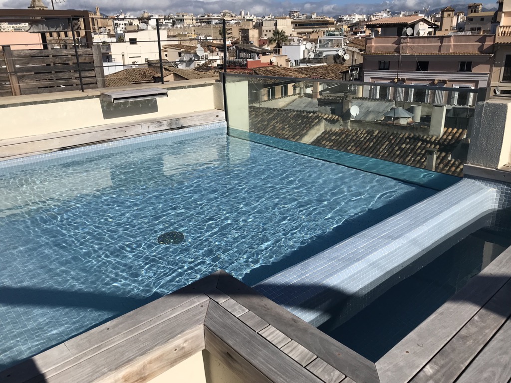 Auf beiden Gebäuden befindet sich je eine Dachterrasse. Von beiden Terrassen hat man einen wunderbaren Blick auf die Kathedrale von Palme de Mallorca. Auf der Dachterrasse des neuen Gebäudes befindet sich auch ein kleiner Pool. Auch hier war die komplette Ausstattung in einem sehr guten Zustand.