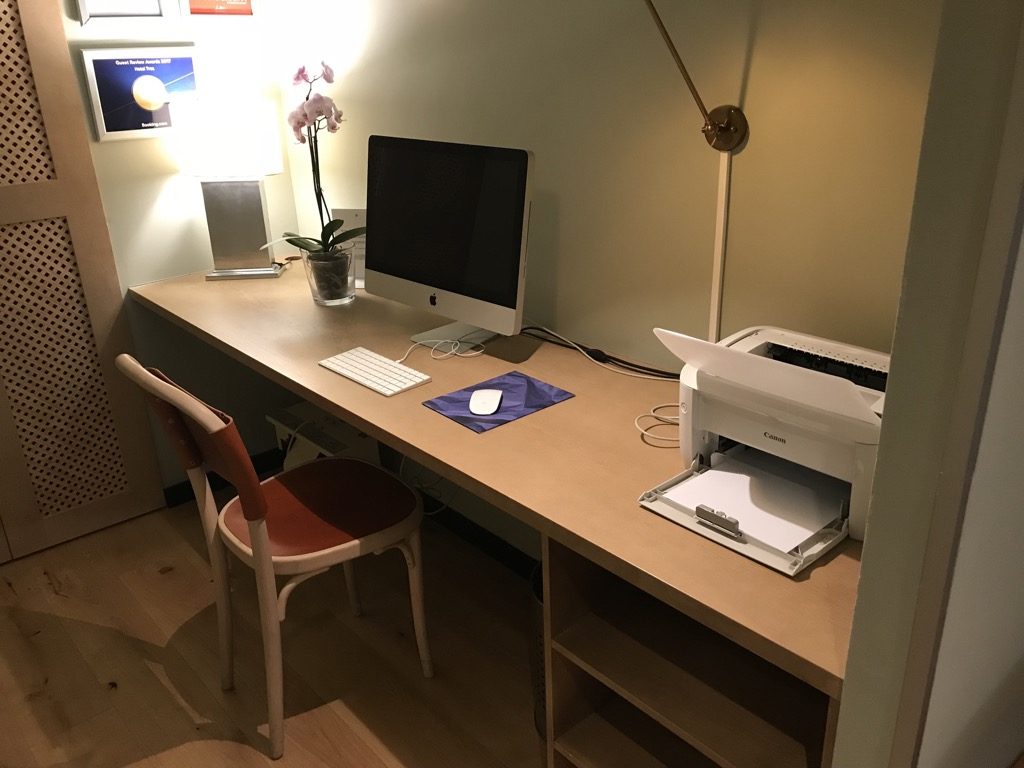 Neben dem Frühstücksbereich befindet sich noch ein Bereich in dem man sich gut aufhalten, mit anderen Gästen treffen oder arbeiten kann. Ein kleines Business Center inkl. Drucker befindet sich in diesem Bereich auch.