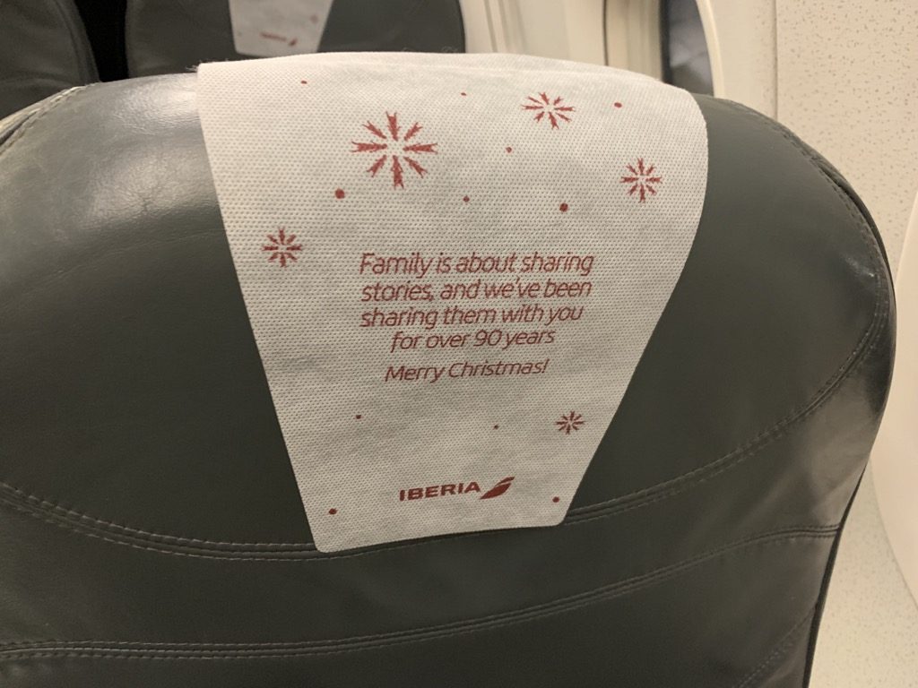 Das Spannendste an den Sitzen fand ich die Kopfschoner, welche bei diesem Flug kurz nach Weihnachten im passenden Design gestaltet waren.