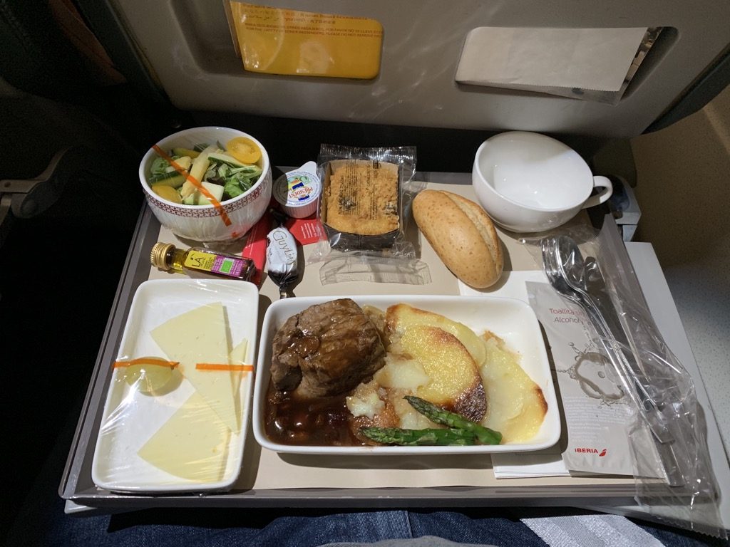 Iberia hat allerdings massiven Nachholbedarf. Sei es bei der Kabine – hier würde ich mir WLAN und Steckdosen wünschen, immerhin sind die Flüge von Madrid nach Europa doch recht lang – oder auch beim Catering. Besonders die Präsentation des Essens könnte man sehr einfach optimieren und dies ohne weitere Kosten verbessern.