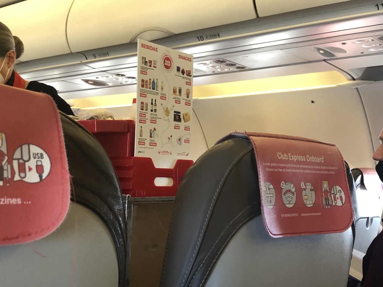 Iberia Express bietet mit Club Express Onboard ein eigenes kostenloses Unterhaltungsprogramm an, wofür allerdings eine Registrierung erforderlich ist. Zusammen mit den USB-Anschlüssen ein absoluter Pluspunkt!