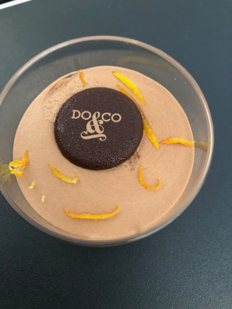 Das Schokoladenmousse kam mir von einem Flug mit British Airways bereits bekannt vor, es scheint ein Klassiker des Caterers zu sein. Lediglich das Porzellangeschirr und Gläser habe ich vermisst, aber es kommt bekanntlich auf den Inhalt an. Das Einweggeschirr soll übrigens recyclebar oder wie das Besteck sogar kompostierbar sein.