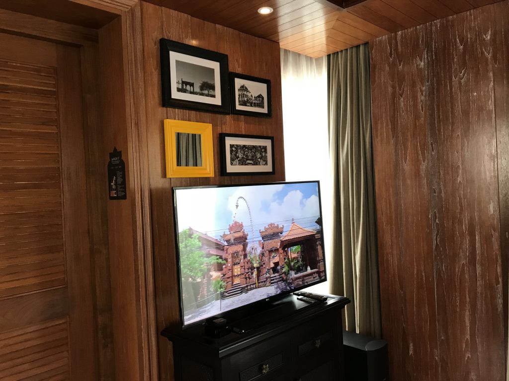 In der eigentlichen Pool Villa hat das große Kind Size Bett dominiert. Es stand mitten im Raum und war beeindruckend in Szene gesetzt. Davor befand sich ein kleiner Wohnbereich mit einer Couch und Stühlen und einem Fernseher.