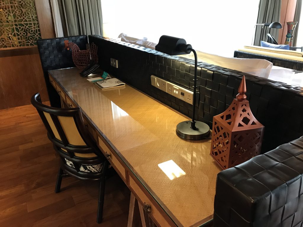 Am Kopfende des Bettes stand noch ein großer, gut ausgestatteter Schreibtisch. Auch hier befand sich an der Wand eine Munch&Punch Bar, wie in dem Doppelzimmer.