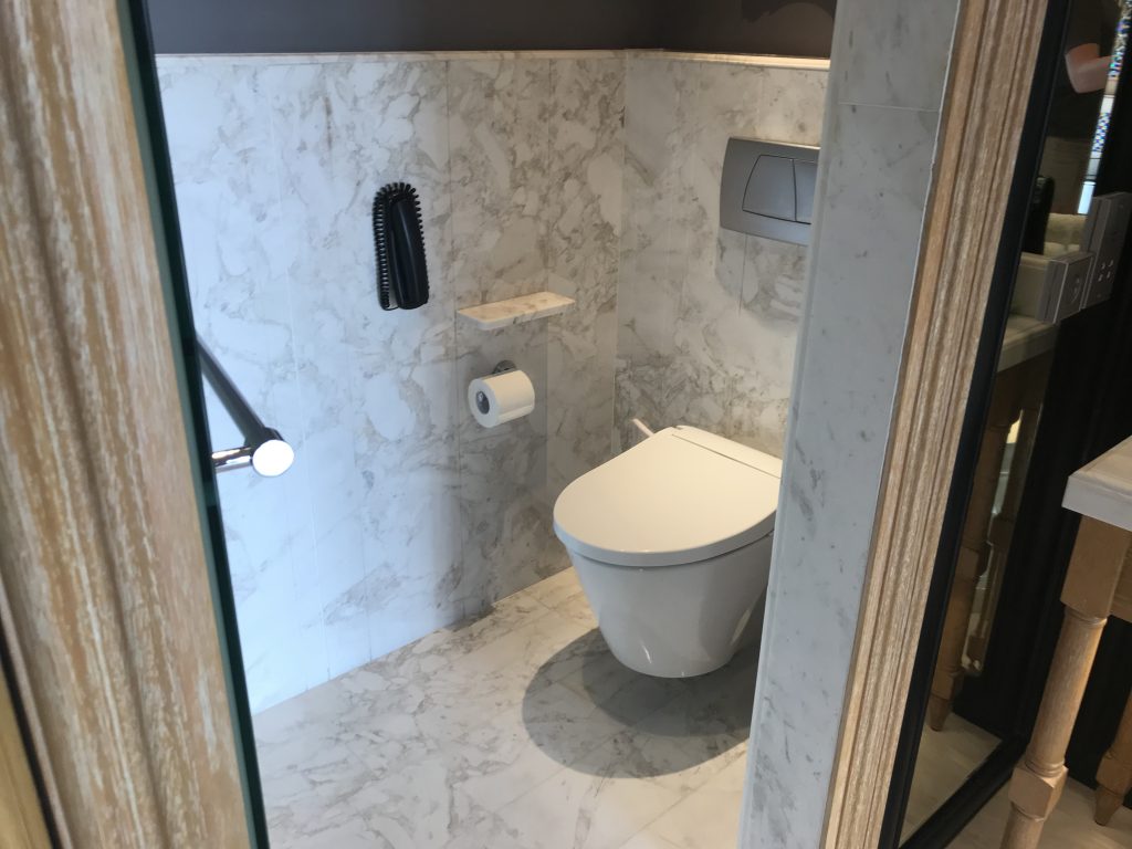 Gegenüber des Bettes befand sich auch der Eingang zum Bad. Auf der linken Seite befand sich eine separate Toilette.