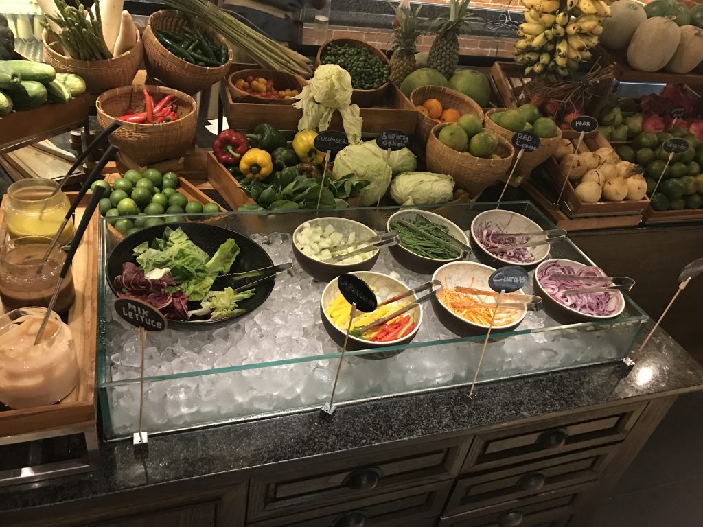 Das Frühstück selbst wurde auf einem Buffet serviert. Überall am Buffet standen zahlreiche Mitarbeiter, die mit Rat und Tat zur Seite standen. Es war auch kein übliches Buffet wie in anderen Hotels. So konnte man z.B. beim Obst das Obst am Stück aussuchen und ein Mitarbeiter hat es geschnitten und an den Platz gebracht. Ebenso bei den Säften. Hatte ich mir einen Saft ausgesucht, wurde er an den Platz gebracht und eingeschenkt.