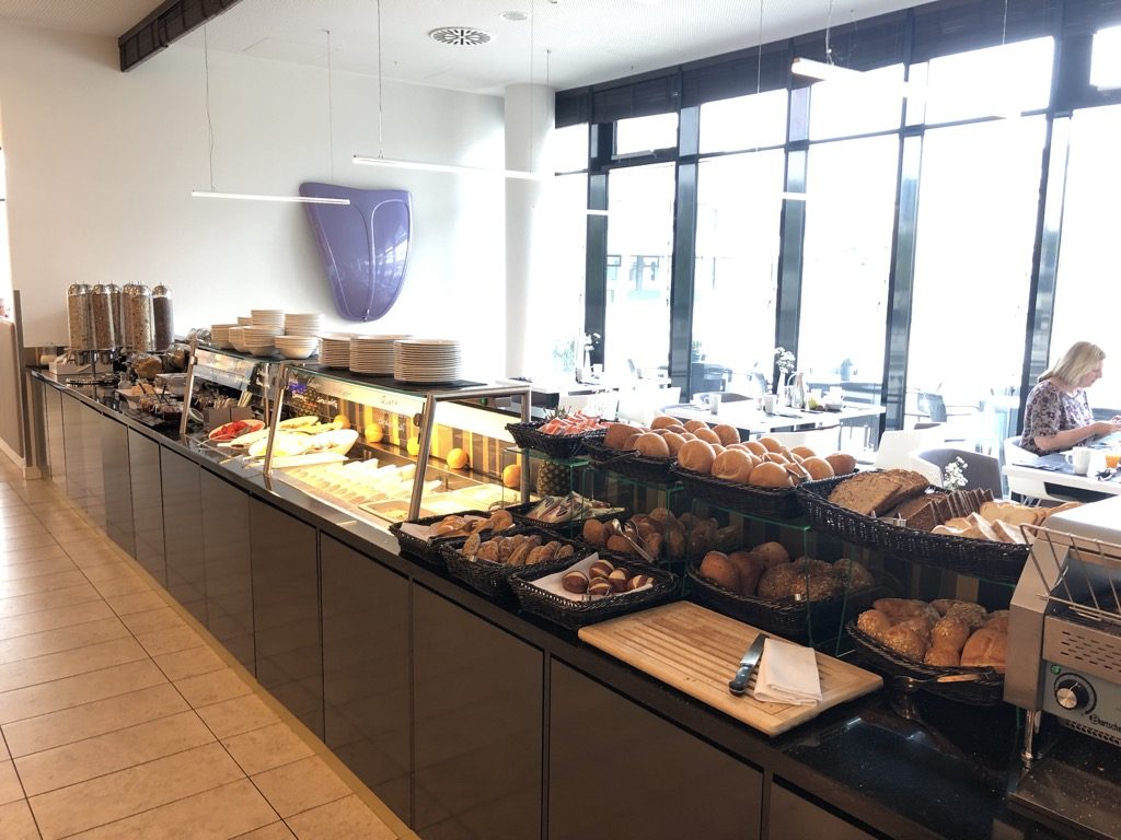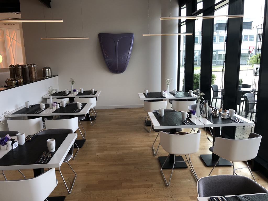 Das Frühstück im INNSIDE by Meliá Wolfsburg wird im Untergeschoss neben dem Rezeptions- bzw. Lobbybereich angeboten.