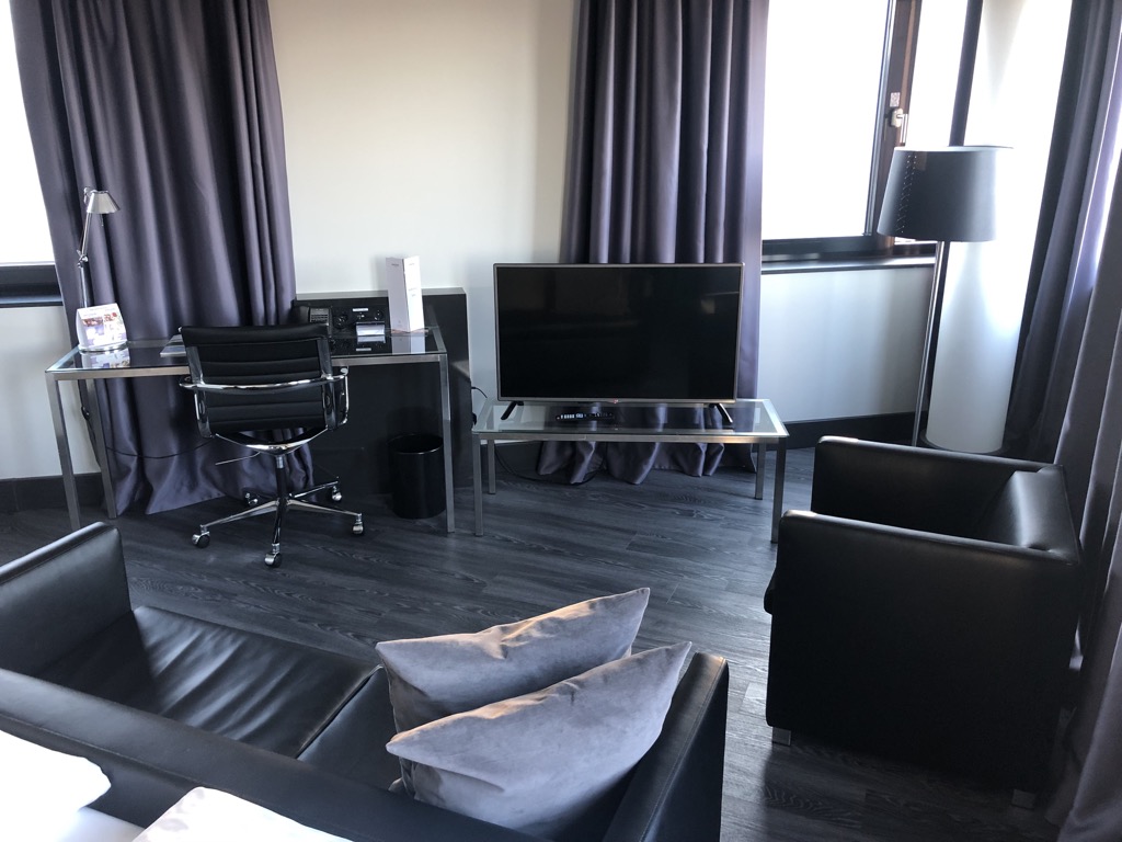 Das Bett war sehr bequem und wirkte keinesfalls durchgelegen oder verschlissen. Insgesamt macht dieses einen sehr hochwertigen Eindruck und bot genügend Schlafkomfort. Neben dem hochwertigen Schreibtisch und dem modernen Fernseher ist die Sessel-Sofa-Kombination das Highlight des Zimmers.